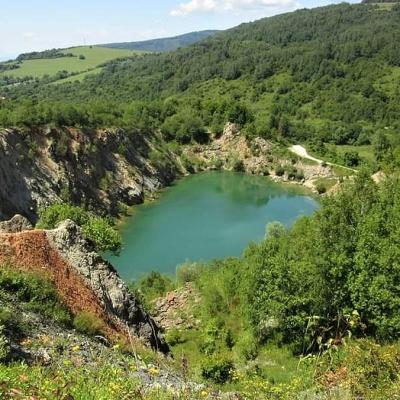 Jazero Beňatina zatopený bývalý kameňolom, Beňatinské jazero je unikátne vďaka svojej tyrkysovej farbe.