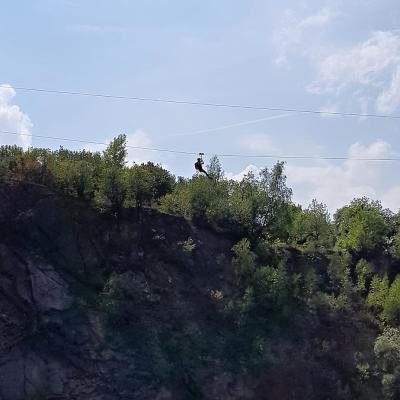 - po obhliadke kostolíka sa presunieme k obci Beňatiná na jazero Beňatina, čo je bývalý zatopený lom, kde sa ľudia chodia kúpať a nachádzajú sa tam pekné vyhliadky aj adrenalinová atrakcia (vid foto),